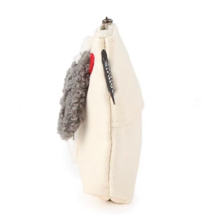 カジュアルなキャンバス生地にやわらかいグレーのもこもこ生地。